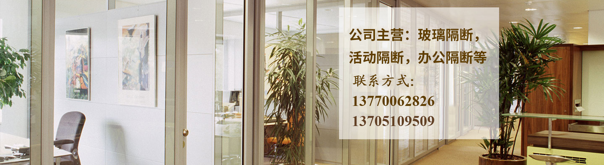 我公司主要生產(chǎn)經(jīng)營(yíng):辦公隔斷、板墻隔斷、酒店活動(dòng)隔斷、電動(dòng)百葉系列以及隔斷型材批發(fā)等。吉豐辦公隔斷廣泛應(yīng)用于:甲級(jí)寫字樓、 酒店、 會(huì)所、銀行、證券公司、保險(xiǎn)公司、政府機(jī)構(gòu)、機(jī)場(chǎng)、實(shí)驗(yàn)室及精密車間等。